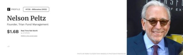 尼尔森佩尔茨作为佩尔茨家族的大家长,一手将家族生意做大做强。很多人误以为佩尔茨家族是美国老钱豪门,实则在当地富豪圈,他们属于新贵阶层,家族的崛起完全离不开尼尔森的打拼。今年84岁的尼尔森,曾就读于沃顿商学院,后来主动退学,回到祖父经营的食品运输业打拼。