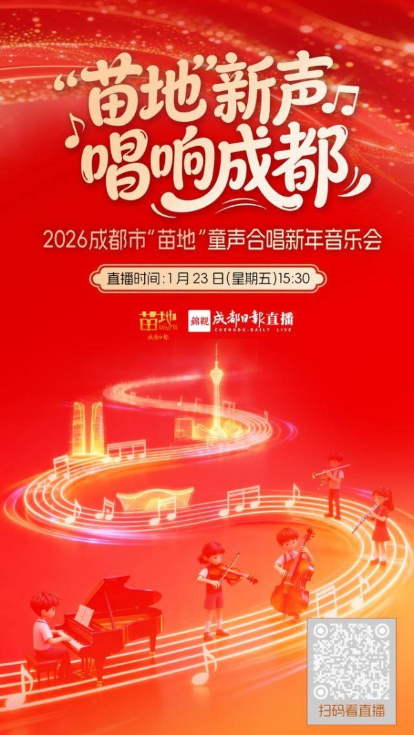 1月23日,由成都市教育局指导、成都日报社主办的2026成都市“苗地”童声合唱新年音乐会即将温暖唱响。
