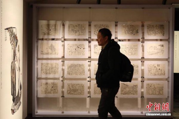 中国国画家戴敦邦200余幅连环画原稿亮相杭州