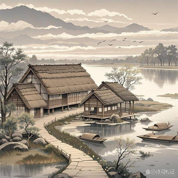 王安石的《菩萨蛮》情景交融,浑然一体。词人通过对自然景色的细致描绘,如茅屋、垂杨、红花、新月、黄鹂等,营造出一种清幽、宁静的氛围,将自己的情感融入其中。同时词中又运用了对比的手法,如“花是去年红”,以花的年年相似,衬托出人生的变化无常。语言简洁明快,用词精准,如“闲”“吹开”“偃”等动词的运用,生动形象地展现了自然景物的特点和变化。