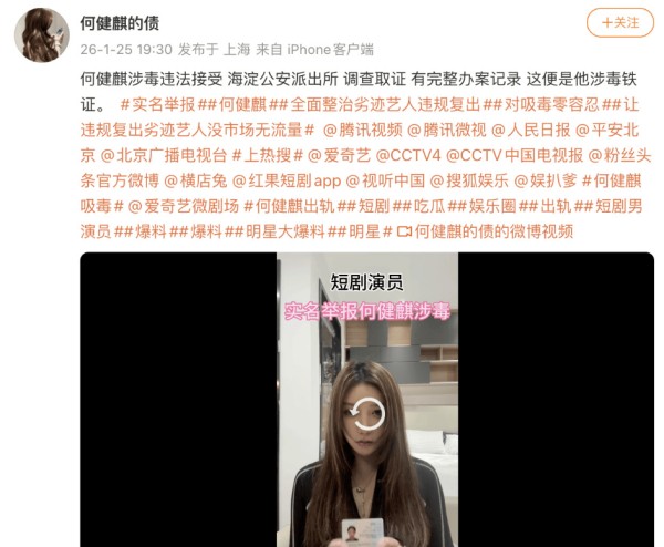 短剧演员何健麒被实名举报涉毒!工作室发声明辟谣
