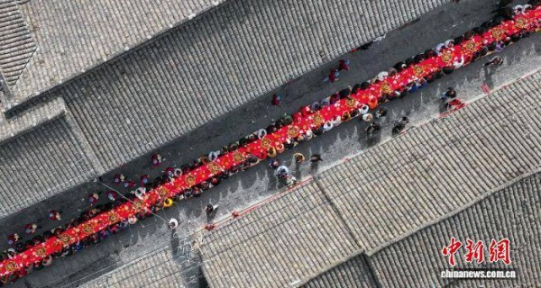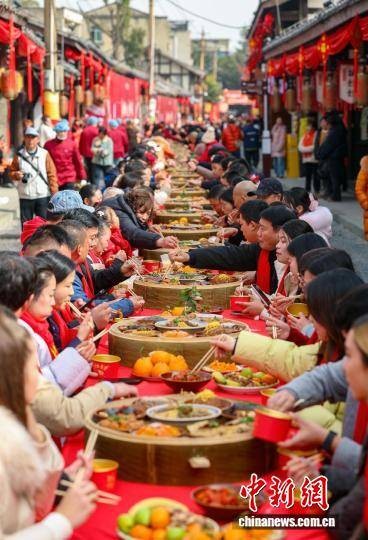 成都青白江:百米长桌宴飘香 城厢古城热闹迎新春