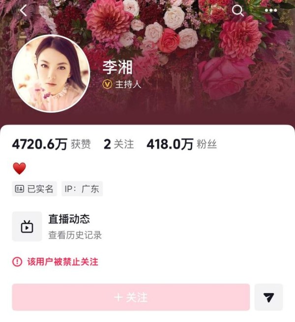 目前外界很是好奇李湘账号被禁止关注的原因,毕竟她也没在直播时做出什么出格的事情。