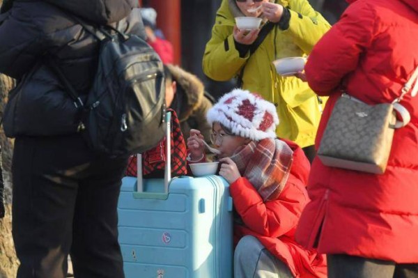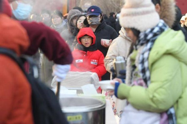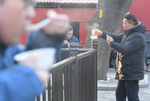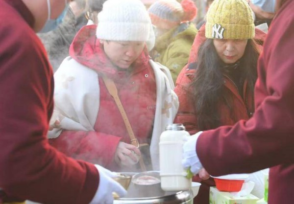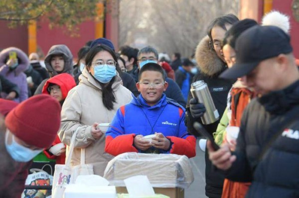 万碗腊八粥上午十点告罄,雍和宫百米长队暖寒冬