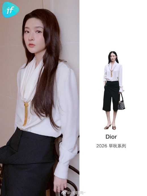 迪丽热巴和邓文迪在迪奥秀前热聊美美合影