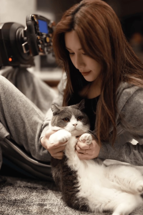 而卸下理性盔甲后,她的感性世界,基本被家中的“毛孩子”全权接管。她自称是 “ 需要大量独处的人”,最享受的回血方式就是回家一头扎进 “四猫一狗”的温柔乡—4只猫主子,加上一位名叫Seven的腊肠狗。“我是一个彻头彻尾的‘cat person’,所有耐心和温柔,基本都上缴给它们了。”在她看来,从来不是宠物需要人类,恰恰相反,是疲惫的现代人需要这些小生命来治愈和充电。这份认知也被她直接 “搬”进了雍熙荣—这里之所以能成为宠物友好空间,首席体验官Seven功不可没,它甚至亲自 “出道”成了项目官方IP,堪称 “打工狗”的楷模。