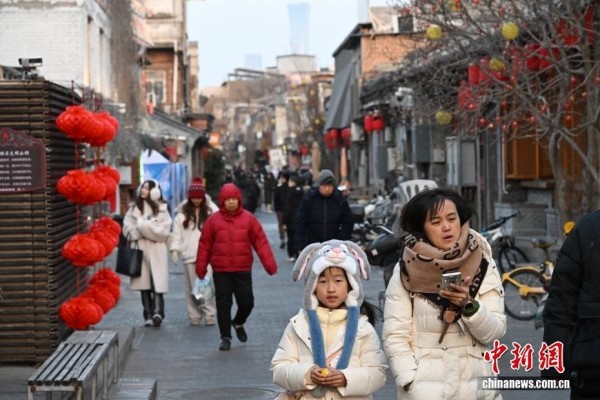 1月27日,游客在杨梅竹斜街游览。春节临近,北京街头节日气氛渐浓。中新社记者 田雨昊 摄