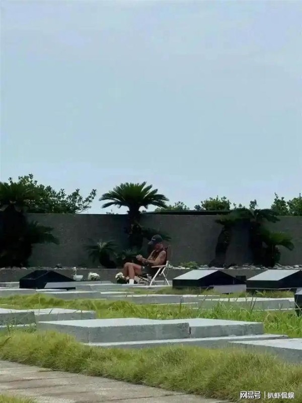 天热的时候,具俊晔就在大S墓前撑起遮阳伞,他坐在那里玩手机打发时间。