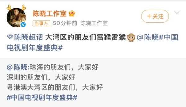 #陈晓回应嘴瓢# 陈晓回应中国电视剧年度盛典红毯嘴瓢,好有活人感的哥