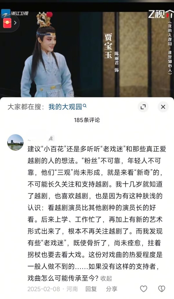 【建议“小百花”还是多听听“老戏迷”和那些真正爱越剧的人的想法。“粉丝”不可靠,年轻人不可靠,他们“三观”尚未形成,就是来看个“新奇”的,不可能长久关注和支持越剧。