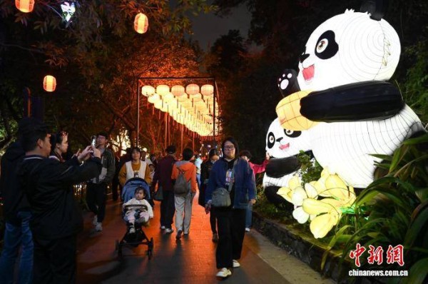 图为游客在越秀公园游园赏花灯。中新社记者 陈楚红 摄