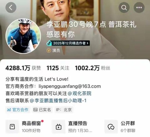 确实,在这个快节奏的直播带货时代,太多人追求 “短平快” 的成交,却忘了直播的本质,是人与人之间的连接。李亚鹏的成功,恰恰印证了一句话:真诚,永远是必杀技。他没有把粉丝当成薅羊毛的 “韭菜”,而是当成了可以交流的朋友;他没有把直播当成赚快钱的工具,而是当成了分享茶文化的平台。