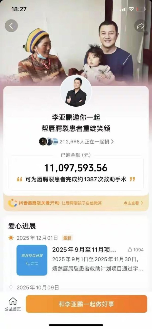 这个决定一出,瞬间让网友们想到了此前引发热议的嫣然儿童医院。不久前,有消息称嫣然儿童医院因为拖欠房租,面临关停的困境。这家医院承载着太多孩子的希望,消息一出,大批网友都通过各种渠道自发捐款,相关话题也持续刷屏,牵动着无数人的心。如今李亚鹏宣布捐出直播收入,无疑是给这家医院,给那些需要帮助的孩子们,送去了一份沉甸甸的希望。这份担当和情怀,瞬间让他的形象高大了不少。