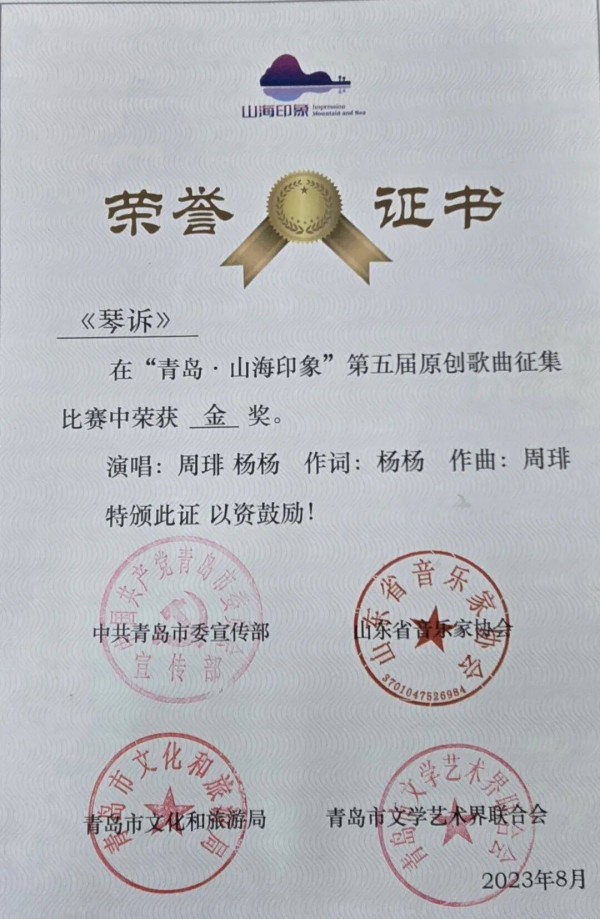 而他们对音乐的共同热爱,让两人在2023年的一次合作取得了一定成就。凭借歌曲《琴诉》在青岛山海印象第五届原创歌曲征集比赛中荣获金奖。《琴诉》成为了青岛国际吉他艺术节的主题曲。