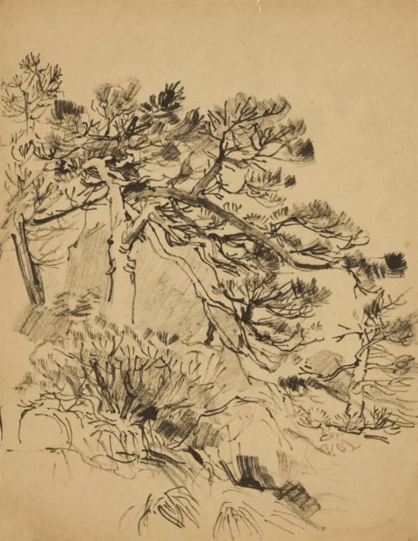 黎冰鸿 老松 23.2cm×17.5cm 纸本速写 年代不详 浙江美术馆藏