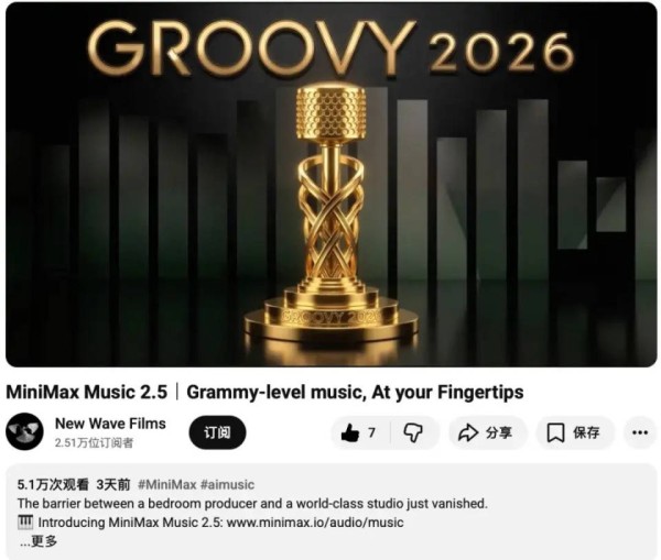 这是海外创作者用 MiniMax Music 2.5生成的,并以戏仿格莱美颁奖典礼的形式呈现。这类案例之所以引发讨论,并不是因为AI又能写歌了,而是因为它实现了三个核心维度的跨越,逼近“格莱美音乐标准”。