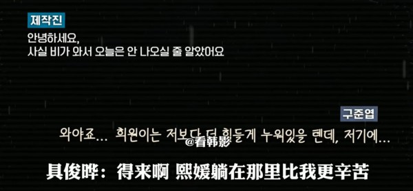 节目组还和具俊晔简单交谈时,具俊晔一直流泪,所以不想让大家看见,但他说:“希望喜欢大S的人不要忘记她。”
