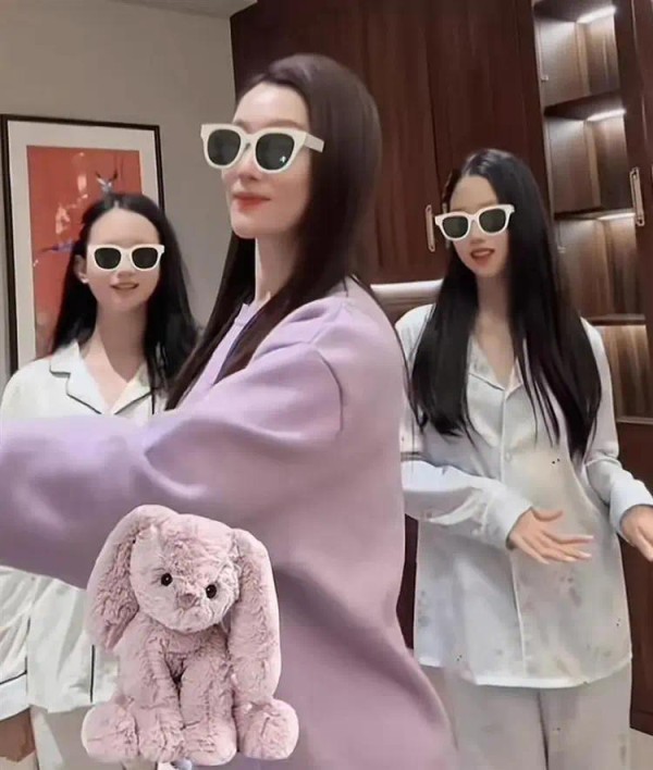 在公开的全家福中,谭晶身着紫色卫衣套装,长发自然垂落,保养得宜的状态完全看不出即将迈入50岁。 她的一对双胞胎女儿穿着同款浅绿色睡衣,姐妹俩容貌出众,眉眼间更像母亲。 存在细微的身高差异,其中一人与谭晶仅相差半头,另一人则稍矮一些。
