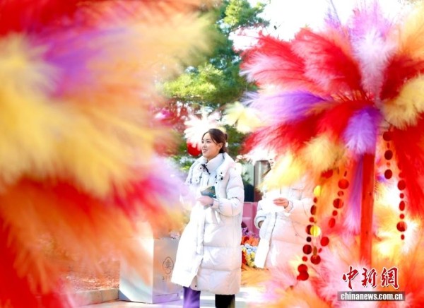 2月4日,市民在北京圆明园海棠书院参观。当日是二十四节气中的立春,圆明园海棠书院内装点了彩色毛绒烟花,为游客营造出新春的暖意和生机。中新社记者 易海菲 摄