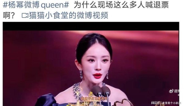 其实真正喊“退票”的是杨幂领奖发表获奖感言的时候。