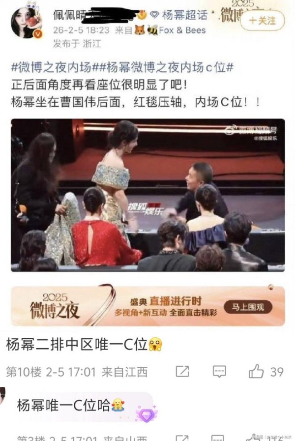 微博之夜座位安排引热议,杨紫成焦点宋佳坐C位!