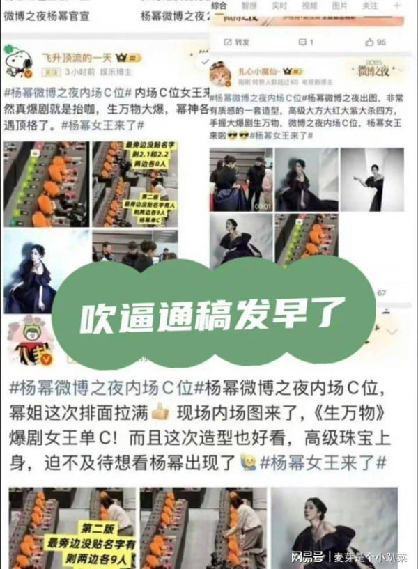 而杨幂粉丝在早些时候就发了通稿,说杨幂是内场主C且唯一C位。