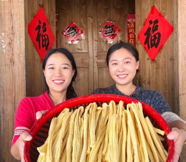 这是美美创业的第一年。2024年10月,她和好朋友阿妹通过抖音电商分享乡村生活,介绍家乡福建屏南的腐竹等豆制品,一年时间,获得46万粉丝关注,月销量最高达10万单。