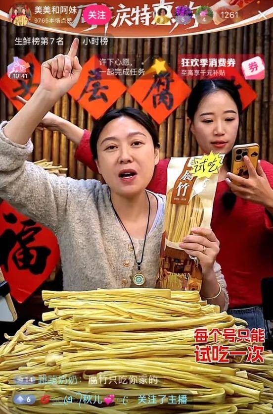 这一举动,实属无奈。临近年关,家家户户置办年货,美美家的腐竹销量远超预期,很快被抢购一空。美美只好暂缓直播进度,尽快备货。