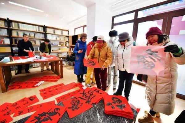 书法家们在圆明园海棠书院现场书写福字和春联送给游客。书院同时举办春色满园・圆明园国画展,邀请艺术家们以圆明四季花卉为主题,以国画为媒介,用东方的笔墨,让湮没于时光的芬芳,于水墨间再度苏醒。
