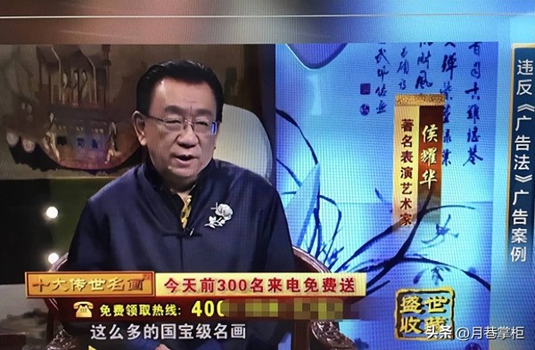 再看侯耀华,提到相声,侯家一直在曲艺圈内赫赫有名。侯宝林可是个大人物,按理说,侯耀华也该有点真本事吧。可是他早年并没有从事相声,而是在外面拍戏。直到后来相声行业火了,他才半路出家拜了师傅。侯耀华之所以能在相声圈里站稳脚跟,完全依赖的是父亲的名声和自己擅长的搞关系。要问他有何拿得出手的经典段子,恐怕老百姓都想不出一个。他的本事不大,但惹事的能力却不小。最让人惊讶的是,他居然到处为人站台,推销假货。最离谱的就是他宣传的所谓十代传世名画,他说这是国际收藏协会监制的宝贝,买了能升值,结果老百姓花了大价钱买回家,发现根本就是浙江小作坊印的丝绸画,成本价与卖价相差十万八千里。