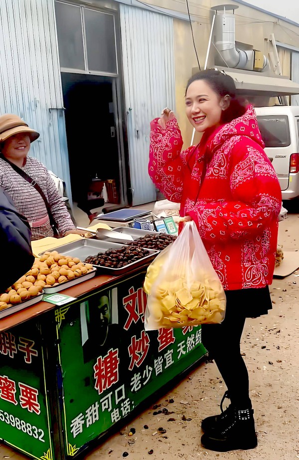 郭晓东与程莉莎很接地气,受到了乡亲们的热烈欢迎。在卖糖炒栗子的摊位前,郭晓东和程莉莎边买边吃,两人就像一对打工返乡的夫妻。