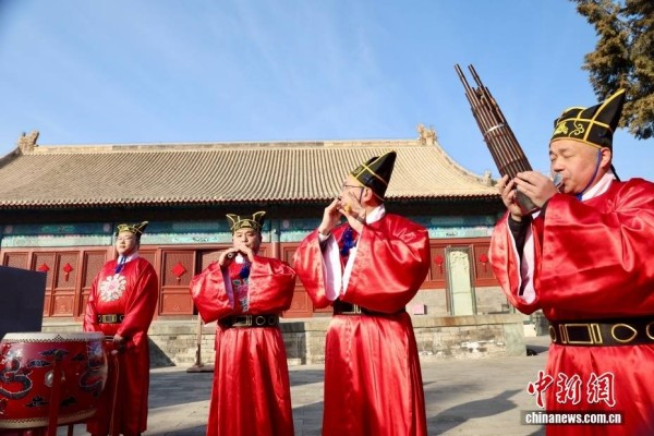 2月9日,天坛公园神乐署开放暨中和韶乐展览开幕式在北京举行。据悉,历经修缮和展陈提升,北京天坛神乐署院落将于10日对公众重新开放。天坛公园在神乐署布设“天坛神乐署中和韶乐展”,以1500平方米展览空间展示礼乐文化。中和韶乐是明清两朝用于祭祀天地、祖先等重大国事活动的专用礼仪性音乐,贯穿整个典仪过程,融礼、乐、歌、舞为一体,是中国雅乐传统的重要组成部分。天坛神乐署始建于明永乐十八年(1420年),是明清两代演习祭祀礼乐的核心场所。作为天坛五组建筑群之一,神乐署承载着中华礼乐的千年文脉。图为中和韶乐演出。中新社记者 易海菲 摄