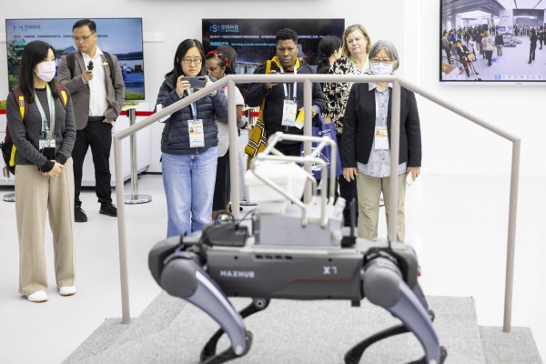外宾们参观并体验四足机器狗的各种功能。 南方+ 梁钜聪 拍摄