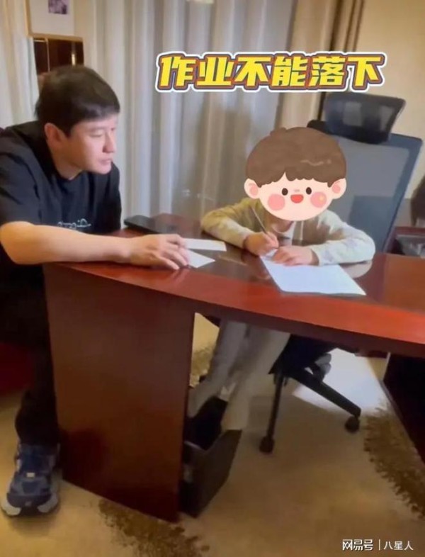 父子俩的相处细节格外真实可爱。小海绵身高已到黄晓明胸口,比上次露面明显长高,站在父亲身边像个“小王子”。两人玩五子棋时,小海绵输了便耍赖,扑在棋盘上“吃”棋子,上演“掩耳盗铃”的小调皮;黄晓明则笑着调侃“哟哟哟,你演,继续演”,纵容里满是宠溺。玩耍过后,黄晓明还陪小海绵写作业,自己也拿着笔和本子同步书写,用“以身作则”诠释着父亲的责任,耐心又温柔。