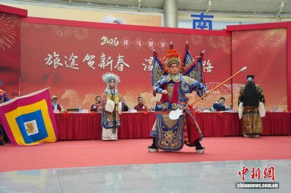 北京南站内多个经典京剧选段接连上演。北京南站 供图
