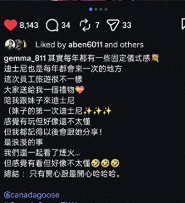 那一刻,所有的喧嚣仿佛都消失了。 照片定格的是她们的背影:妈妈微微低头贴着宝宝,宝宝的小脑袋昂着,共同望向那片璀璨的魔法天空。 画面里满是温柔和守护的意味。 鬼鬼在另一个平台晒出了这张背影照,就是那句“妹子第一次看烟火”。 没有长篇大论,但所有当妈的,大概都能懂那种想带她看遍世间所有美好的心情。