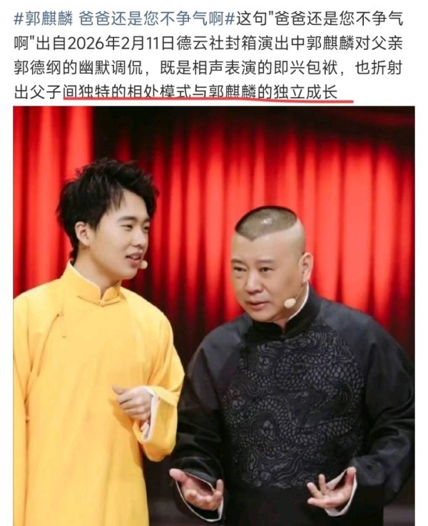 郭麒麟和郭德纲说相声,一个抱怨儿子黑粉黑自己,一个让父亲再争气一点——引言。
