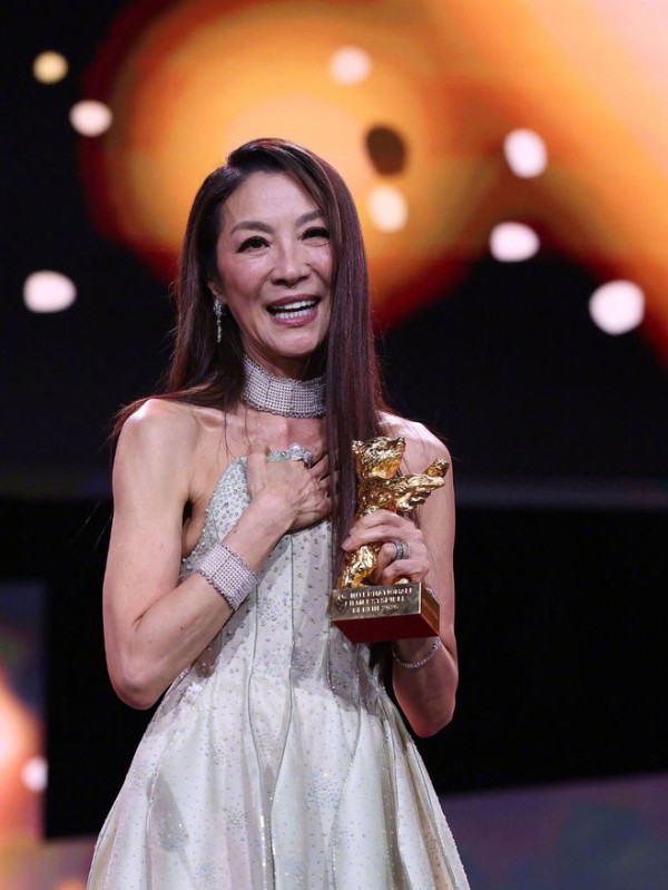 杨紫琼还表示柏林电影节给了她归属感,“当我还在寻找自己属于何处,柏林欢迎了我。”她还回顾了从马来西亚槟城女孩到国际影星的旅程,“我这一路跨越了语言和文化、各大洲和各类型,有时优雅,有时带着一点疼痛,但指引着我的,一直是好奇心和对电影的深深信赖。电影成为了一个让我可以保有矛盾、力量、脆弱、严肃,可以扮演控制和服从的地方。它不仅给了我一个职业生涯,也给了我从不敢想象的宏大人生。”