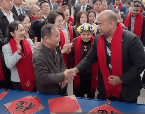 国际日报广东江门讯(记者 陈浩光)2026年2月11日,恰逢中国的小年,瑙鲁总统戴维·阿迪昂抵达其祖籍地——广东省江门市开平市赤坎镇中股村忠心里,与族亲共度新春佳节。活动期间,江门市书法家协会主席冯永胜亲自指导阿迪昂总统体验中国书法,以笔墨为媒搭建起中瑙文化交流的桥梁,为两国人文交往书写了温馨篇章。