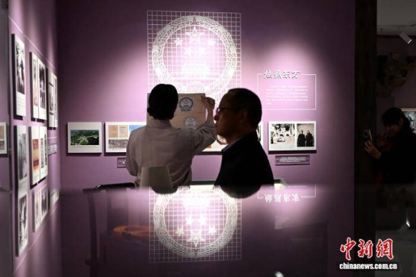图为林徽因参与国徽设计的相关文献资料吸引参观者。中新社记者 吕明 摄