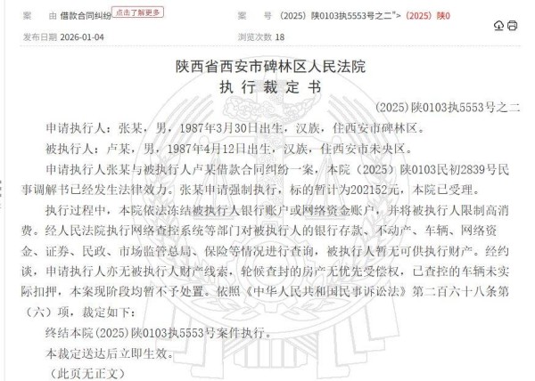 知名相声演员卢鑫,近日被西安市碑林区法院公开悬赏1万元,寻找其下落。法院公告称,提供卢鑫行踪线索并能协助履行相关义务的人,将获得1万元的赏金。该执行案件由西安市碑林区法院执行,案号为(2025)陕0103执5553号。2月11日,碑林区法院执行局的一名工作人员向记者确认,张玉浩提出的悬赏请求是实情。他还特别指出,案件已经交给专门的执行法官处理。尽管记者尝试联系该执行法官,但并未得到回应。