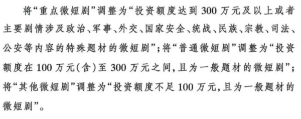 这一变化主要受国家广电总局1月起正式实施的微短剧分层分类新标准影响。根据最新标准,“重点微短剧”投资额下限从100万元调整至300万元。