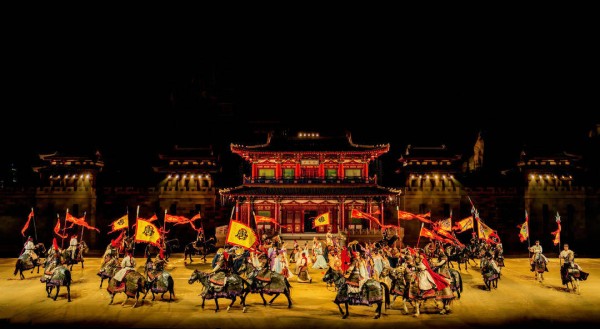 提升审美价值,用视听矩阵陈列出一场宏大的美学盛宴。据景区相关负责人剧透,该剧目以大唐中后期历史事件为故事主线,讲述琅琊颜氏家族在乱世中的坚守与牺牲,生动诠释中华民族公忠爱国、自强不息的人文品格。演出阵容堪称豪华,由150余名专业演员倾力演绎,同步融入上百匹马、骆驼、渡鸦及捷克狼犬等动物,搭配千余台灯光与舞美道具,构建出多维立体的视听矩阵。值得一提的是,剧场内特设全国首创环场跑马赛道,融合马道、水中、山体、环城四大特色跑法,巍峨城墙与两侧箭楼构就完整环形跑道,山体外侧特设升降 LED 屏,火山喷发、流水奔涌、烟火璀璨等特效轮番上演,为观众带来强烈感官冲击。其专属秀场可容纳约4200名观众同时观演,多项创意设计创下全国行业先例。