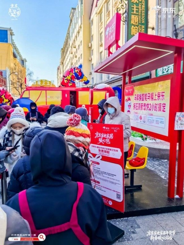 2026年立春之际,哈尔滨仍在零下30℃的寒风中迎接来自世界各地的游客。中央大街人潮涌动,欧式建筑在雪光映照下显得愈发庄重而浪漫。冰雪旅游的持续升温,让这座城市在极寒之中呈现出罕见的热度。在这波“尔滨宠粉”的热潮中,最令中外游客赞叹的除了冰雕雪景,还有一座融合了艺术美学与尖端科技的“红色马车”,这便是惠达卫浴携手京东在中央大街核心地段送出的一份“暖冬礼”。