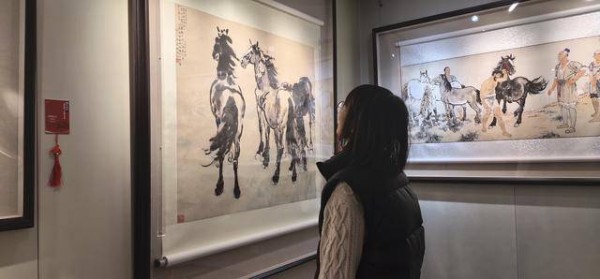 该展览将展出至4月10日,观众可免费参观。《群马》《群奔》《立马》等徐悲鸿的经典画作均展出。
