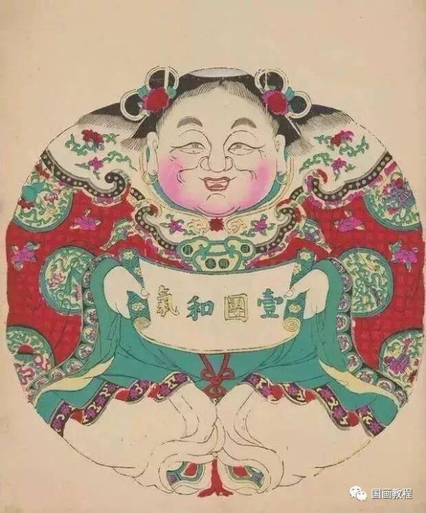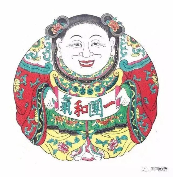 《和合致祥·一团和气》 清中期 墨版套色敷彩