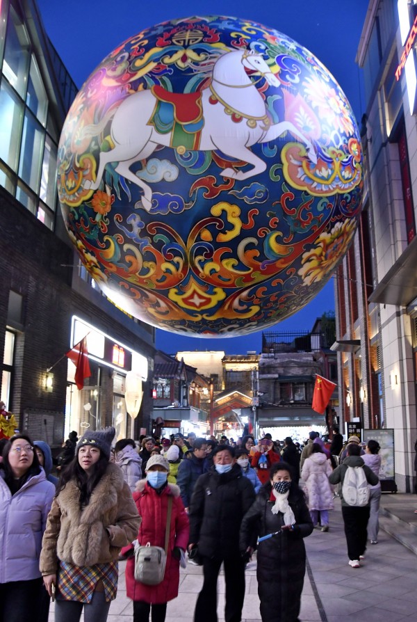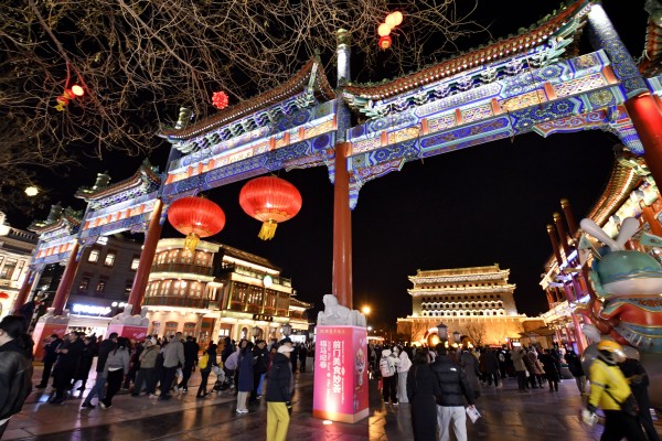 春节将至,北京前门步行街及周边商圈张灯结彩,吸引大批游人和市民前来赏灯、购物。
