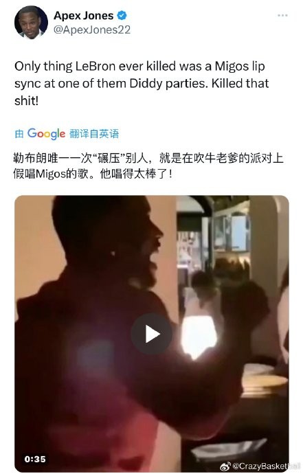 国外媒体人:詹姆斯唯一一次“碾压”别人,就是在吹牛老爹的派对上假唱Migos的歌,他唱得太棒了!