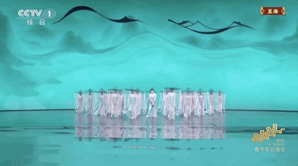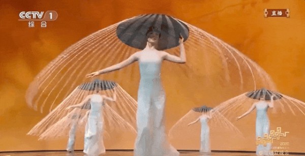 在细节之处,《喜雨》同样精心雕琢。除了核心道具珠帘斗笠,舞美还融入了远山、屋檐、轻舟等元素,音乐主要以阮、二胡为主奏乐器,共同勾勒一幅生动的春景。