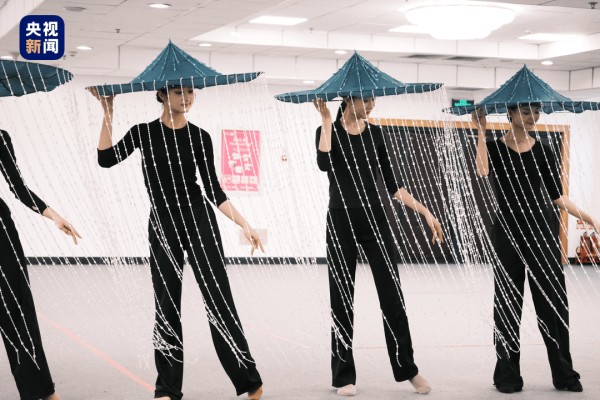 同样来自浙江音乐学院舞蹈学院的学生张碧瑶介绍,为了在道具的重量下依然营造出雨的轻盈,在舞蹈动作上设计了幅度小、速度快的灵动动作。表演时必须依靠对细微力道的精准控制,以及精确到10度、15度的角度转向,来确保动作整齐、珠帘摆动可控。